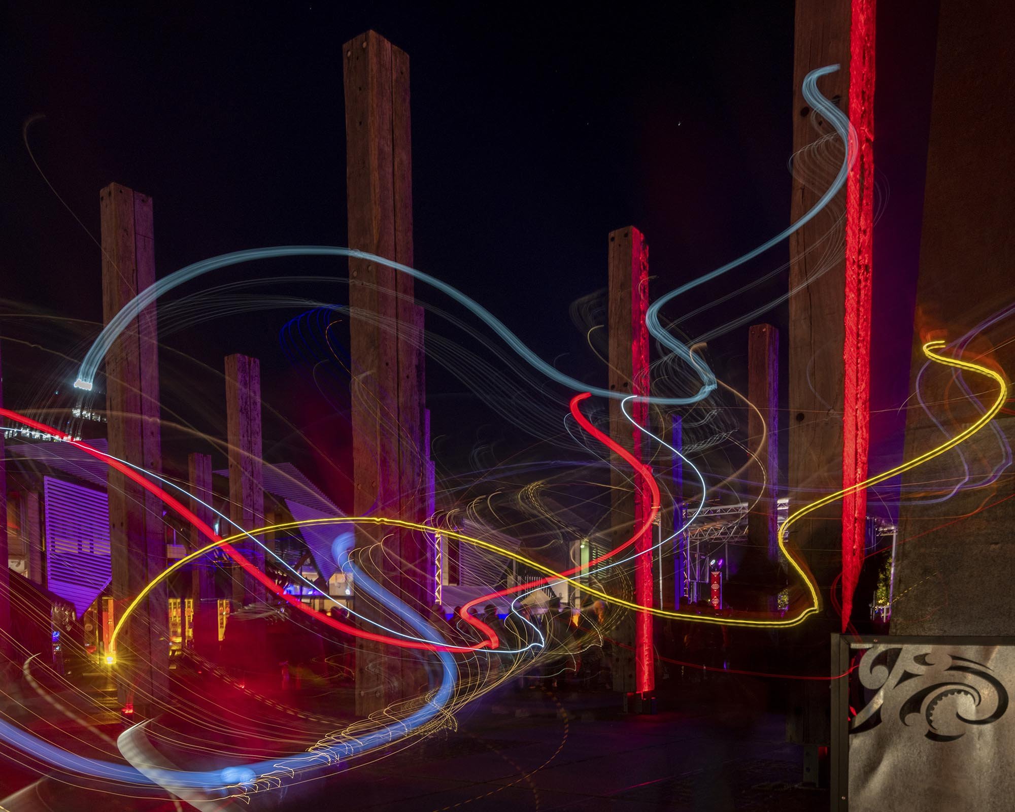 There were decorations, installations and performance all around the Wellington waterfront. I was sitting in a bar on the waterfront and saw some performers on stilts coming towards us, it was night time, I grabbed our tripod and took this shot (Matariki_Magic, 6 sec @ F/11 OSO 250) I was pleasantly surprised when I saw it after downloading my photos.